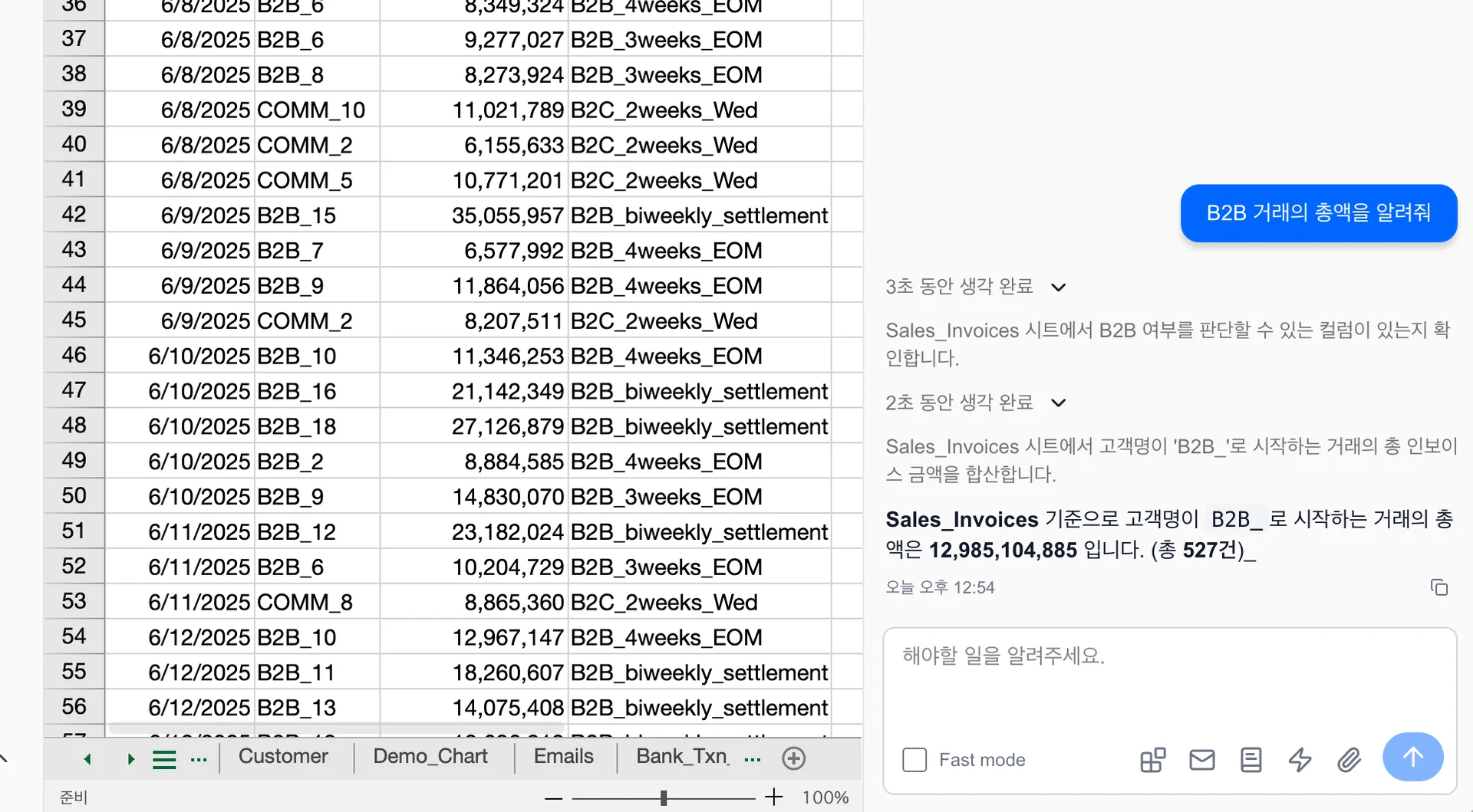 1행의 값이 "거래처"인 열을 찾아서, 그 값이 "OO은행"인 행을 모두 찾는다.사람이 시트를 탐색하는 과정과 상당히 흡사합니다. 게다가 이 과정은 AI가 가장 잘하는 코딩을 사용하면 단숨에 해낼 수 있습니다.